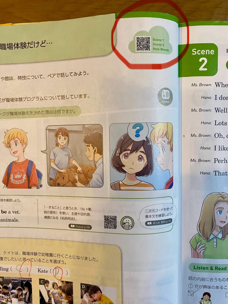 読み方がわからないときは、教科書についているQRコードを読み取り音声を聞きながら口を動かす(シャドーイング)