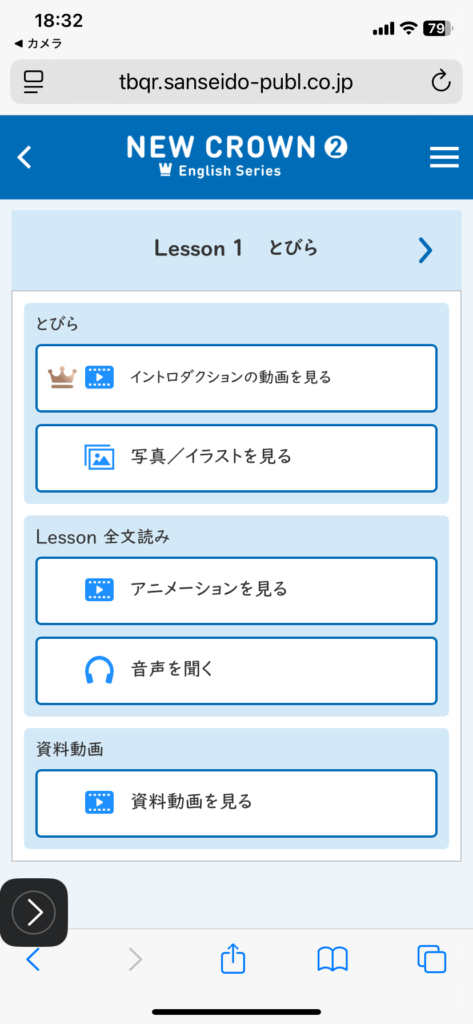 息子の学校は『NEW CROWN』です。他の教科書でもQRコードがついている場合が多いと思うのでぜひ使ってみてください。