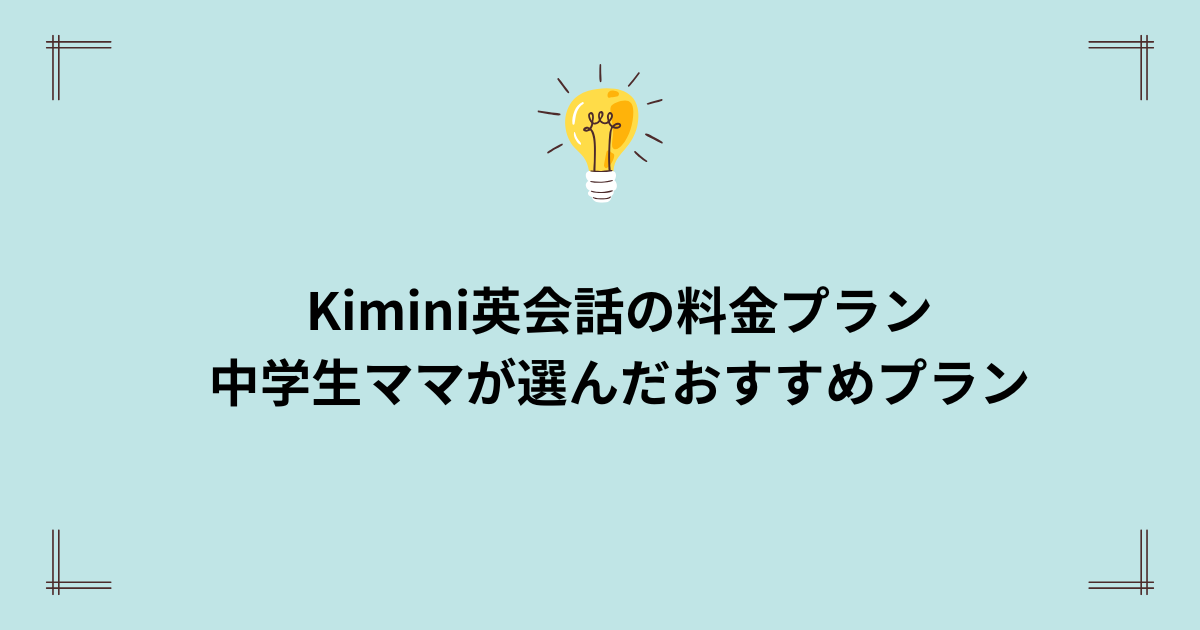 この記事では、実際に中学生の息子がKimini英会話を使っている私が、全プランの料金と違いをわかりやすくまとめました。
